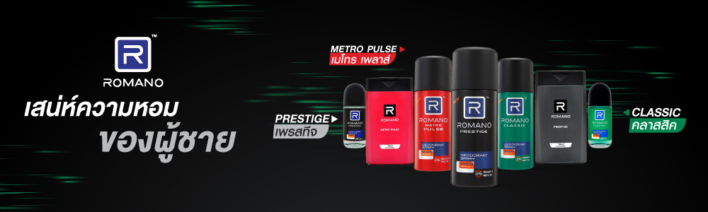 Romano has a range of fine fragrance men’s toiletries for the urbanites who is self-assured of his success. He plays the game of life on his own terms and stay ahead in life. Available in 6 variants ie Metro Pulse, Prestige, Classic, Urbane Attitude, Force and Unique. Our popular deodorant Spray has Its unique masculine fragrance and anti-bacterial agent provides 24 hour odor protection to help keep you smelling great and feeling confident all day long. The quick drying and residue free formula gives a comfortable feel upon application. These products are available in 3 variants Metro Pulse, Prestige, Classic markets across Thailand.